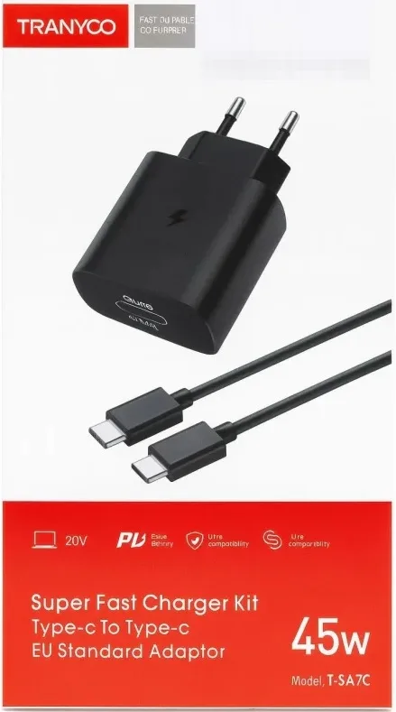 Tranyoo 45w T-SA7C Black супер бързо зарядно с кабел Type C – Type C Гаранция!
